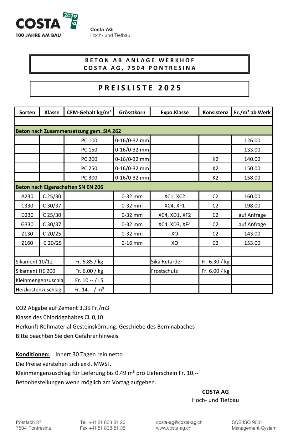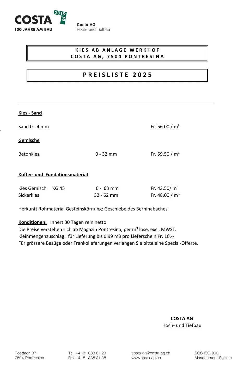 Preisliste Kies/Beton